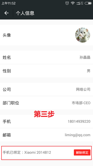 3、点击右下方的“手机解绑”待审批同意后,直接打卡即可重新绑定。